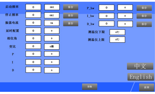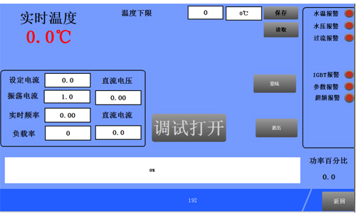 本電源有負載自適應(yīng)功能,在不上主電狀態(tài)下,調(diào)整好負載之后,在電源內(nèi)控模式下加熱,上位顯示屏自動給出負載的匹配狀態(tài)及諧振頻率供用戶參考調(diào)試。